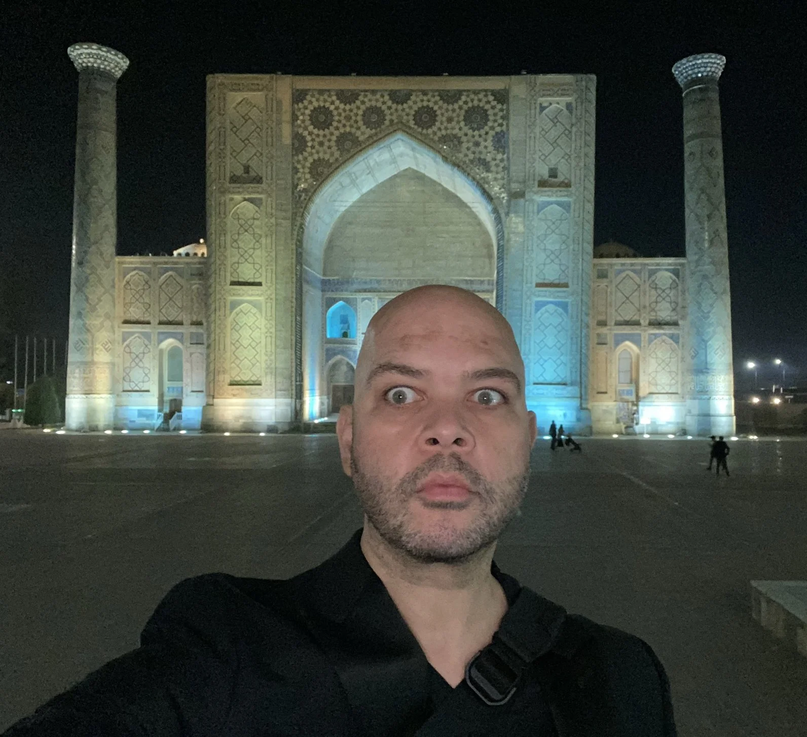 Tashkent, Ubzbekistan: Modernist architecture I know. Behren’s 1909 AEG factory in Berlin, Corbusier’s 1928 Villa Savoye in France and the Guggenheim here in NYC (guess the year) I’ve all seen. So arriving in Tashkent en route to a road trip around the Aral Sea and the former Soviet chemical weapons testing center on Vozrozhdeniya Island was just transiting. Abrubtly, a parallel world of Tashkent Modernism beckoned. Simple geometric shapes fused with large slabs of reinforced concrete. The exquisite latticework of the State Museum of History and then I checked into something even better from 1974: The Hotel Uzbekistan. I stayed until I ran out of funds and was deported back to Russia.